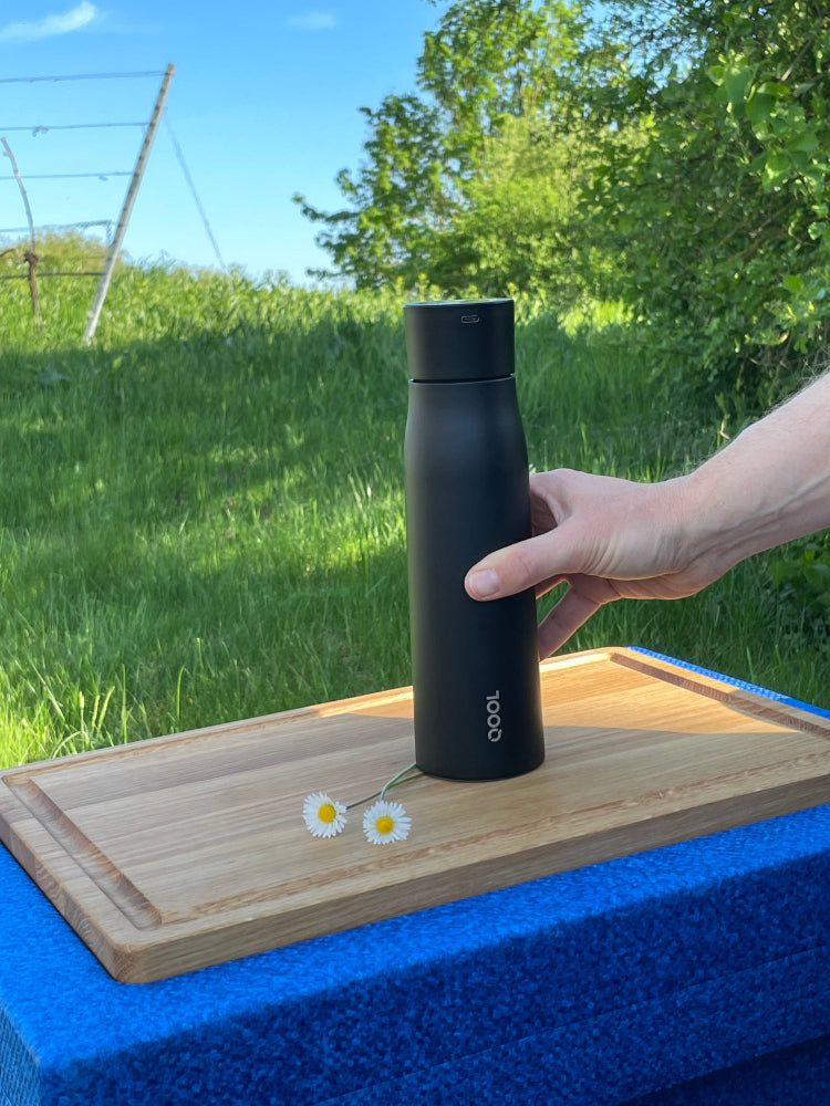 Whether in the office, on the go or in the field – the QOOL Bottle reminds you to drink, keeps your drinks at the perfect temperature and cleans itself thanks to UV technology.